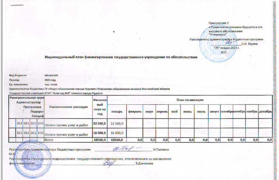 Индивидуальный план финансирования на 2021